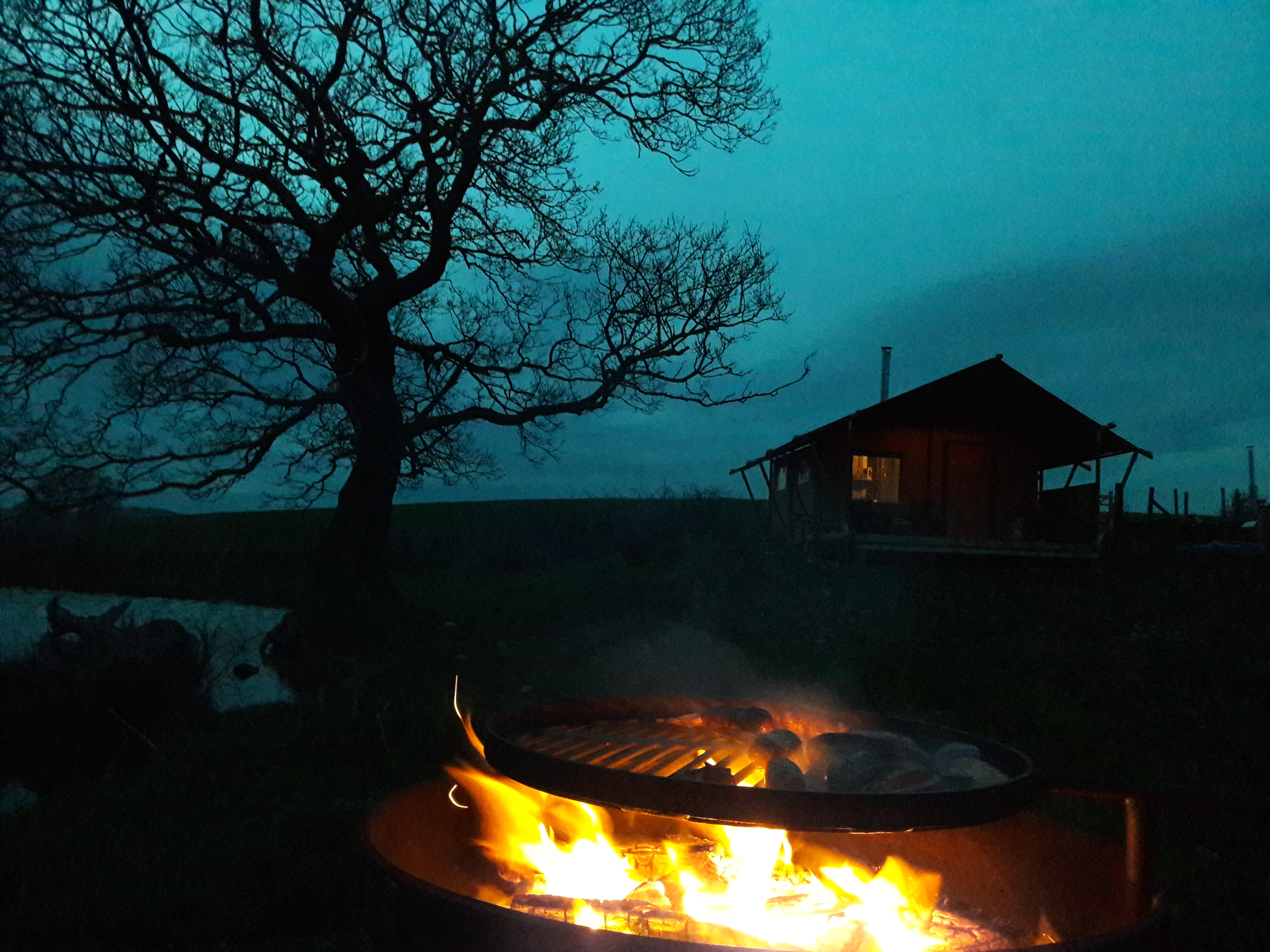 Under the Oak Glamping is the perfect get away from it all escape for families or couples looking to get away from it all. The pace of life slows down as soon as you head up the track towards the beautiful safari tent. Many of our guests don’t want to leave and while away their days relaxing in the hot tub, having a glass of wine on the huge veranda and taking in the amazing views of the rolling South Wales hills. Younger guests enjoy hunting for wildlife at the water’s edge, or gathering mud, sticks, stones and leaves to get creative in the mud kitchen. There’s also a rather awesome tractor tyre sandpit.